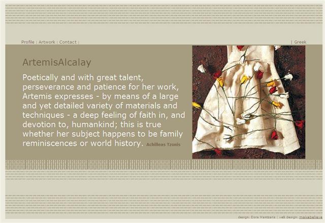 makebelieve design & consulting developed Artemis Alcalay's personal website, showcasing the artist's portfolio. Designed by Theodora Mantzaris. makebelieve also maintains the site and provides technical support. 2007.