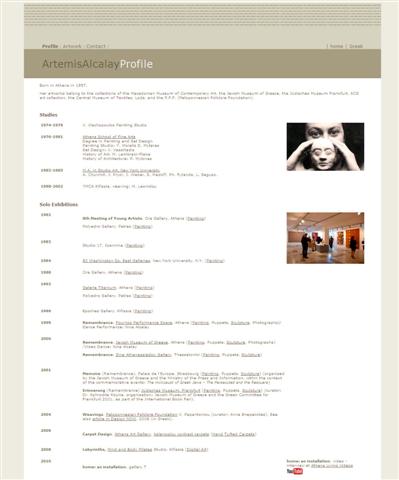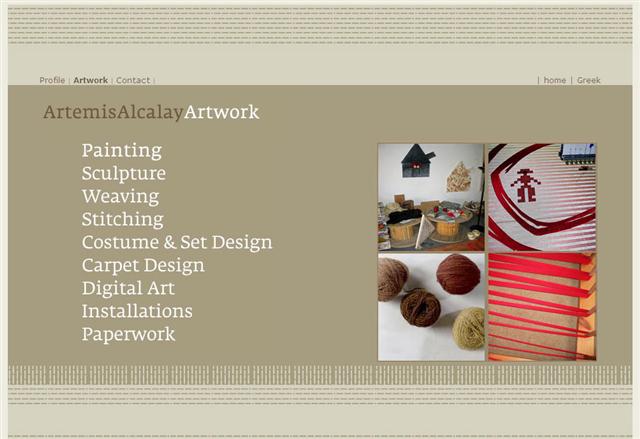 Design implementation and development of Artemis Alcalay's personal website, showcasing the artist's portfolio. 2007.